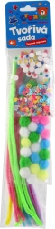 Támogasd a gyerekek fantáziáját ezzel a színes kreatív készlettel, amely 5 különböző változatot kínál anyagokból és kiegészítőkből. A csomagban mindent megtalálsz, ami kell állatok, figurák, virágok és pillangók készítéséhez. Minden készlet eltérő színkombinációkat tartalmaz, így minden kis alkotó megtalálja a kedvencét. Csak egy kis ragasztó és kreativitás kell – és máris születhetnek egyedi dekorációk.