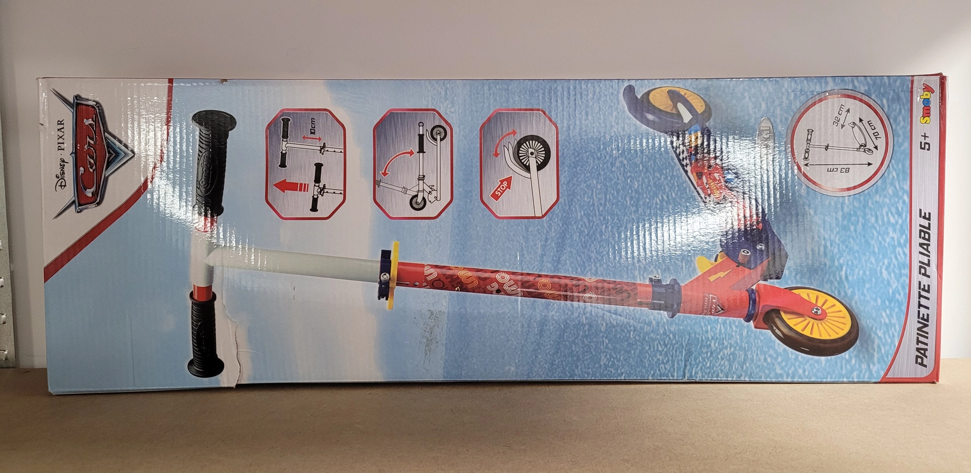 Könnyű és tartós gyerek roller Verdák CARS – Villám McQueen motívummal, amely minden kis motorost megörvendeztet. Alumínium szerkezetű, állítható kormánnyal (73–83 cm), csúszásmentes, széles fellépővel, csendes kerekekkel és lábfékkel. Maximális teherbírás 50 kg, ideális 5 éves kortól. Figyelmeztetés: sérült csomagolás, apró karcok/lepattanások.