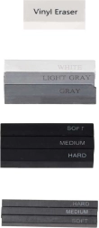 - 3× fehér (fehér, világosszürke, sötétszürke), 3× fekete (lágy, közepes, kemény)
