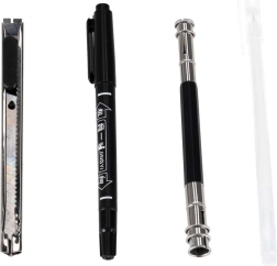 - fehér zselés toll, fekete marker, ceruzahosszabbító, papírvágó kés, csiszolólap, vonalzó