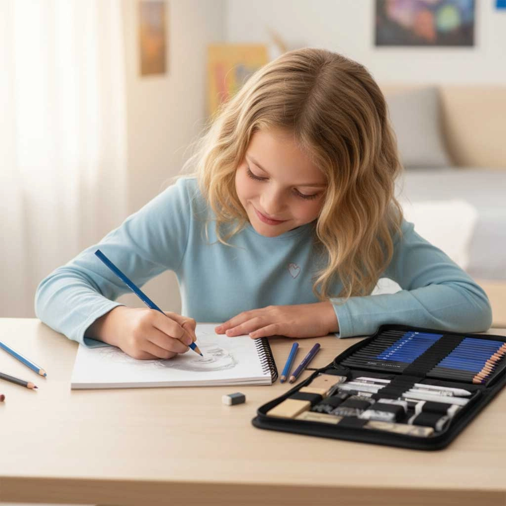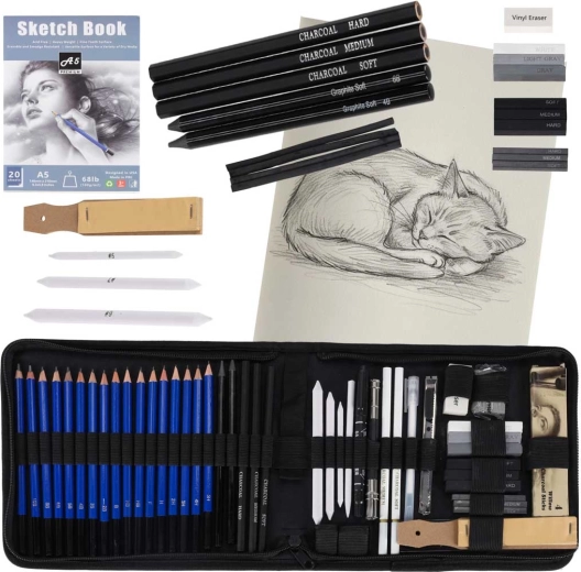 Lépjen be az alkotás világába ezzel az 54 részes vázlatkészlettel, amely ötvözi a grafit- és szénceruzákat, a blendelő eszközöket, a radírokat és a praktikus tokot. A széles keménységskála és a gazdag felszereltség révén könnyedén készíthet finom árnyékokat és precíz részleteket. A csomag része egy A5-ös skiccfüzet (20 lap) is, hogy bárhol és bármikor rajzolhasson.