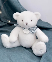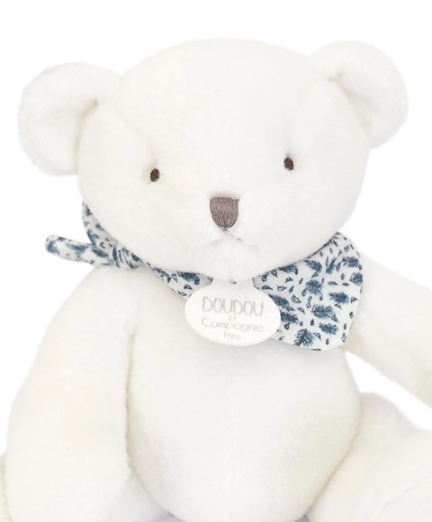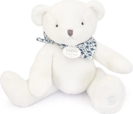 A DOUDOU márka bájos fehér plüss mackója kék kendővel ideális első kis barát a babáknak. Puha, prémium anyagból készült, biztonságos hímzett részletekkel és születéstől alkalmas. Tökéletes megnyugtatáshoz, ölelgetéshez és nyugodt elalváshoz, finom színei pedig bármely babakelengyébe illenek.