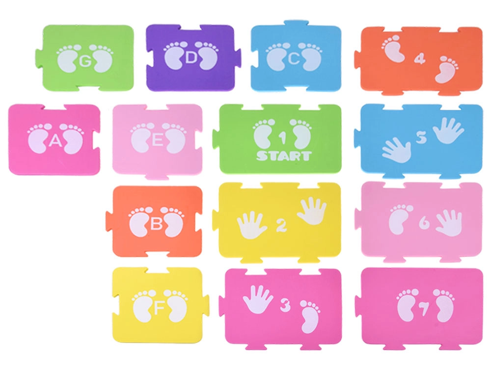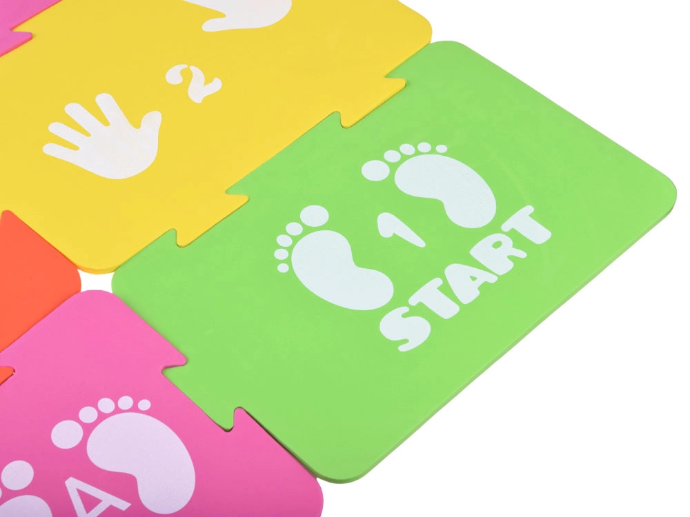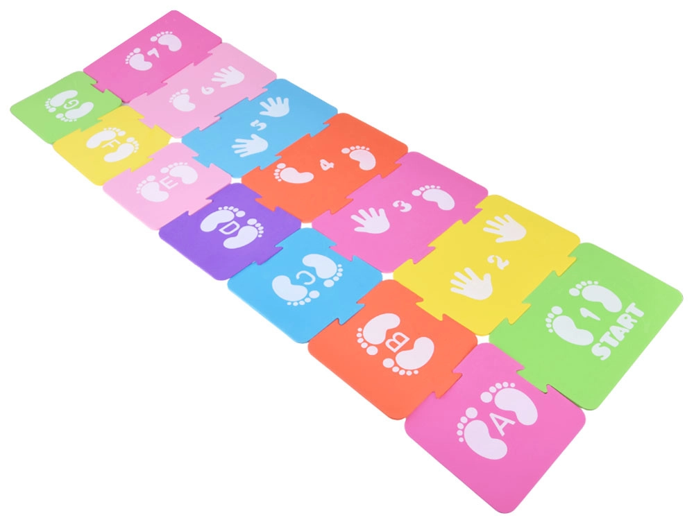 Ez az akciójáték remek választás nagyobb csoportoknak és családi délutánokra egyaránt. A cél a mozgásos sémák szerinti kihívások teljesítése – a kezeket és lábakat a kijelölt mezőkre helyezni, és úgy haladni előre, hogy más felülethez ne érjenek. A puha, csúszásmentes felületnek köszönhetően a gyerekek biztonságban vannak, miközben színeket, betűket és számokat is tanulnak.