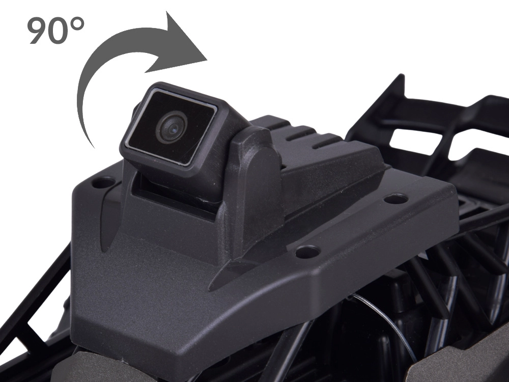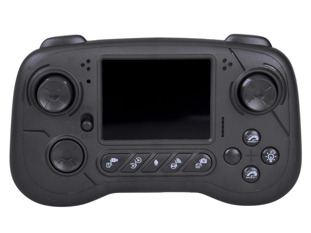 Az ergonomikus, kijelzős vezérlő áttekinthető élő nézetet kínál, 2 sebességet, irányítás a kormányzáshoz, a világításhoz, és egy gombnyomással indítható a fotó/videó és a hangkommunikáció.
