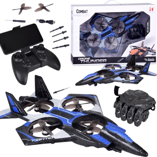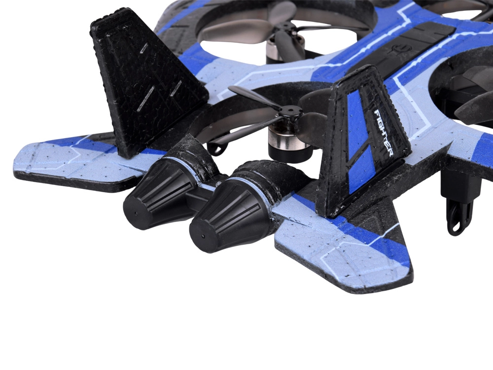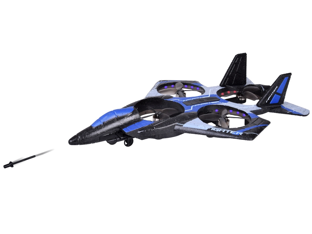 Az RC távirányító továbbá harci üzemmódot kínál műanyag nyílvesszők kilövésével (4 db a csomagban), így „légi csatákat” is rendezhet. A színes LED világítás javítja a tájékozódást és a láthatóságot. A távirányító akár 8 funkciót is kínál, beleértve a giroszkóp kalibrálását, az automatikus felszállást/leszállást és a vészleállítást.