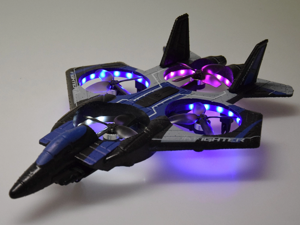 A könnyű habanyagú test és a fedett rotorok kibírják a kisebb ütközéseket, és stabil repülést biztosítanak. A színes LED diódák javítják a tájékozódást.