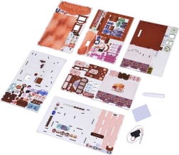 - kivágott lapok 179 darabbal, LED világítás, elemek, ragasztó, csiszolópapír, képes útmutató