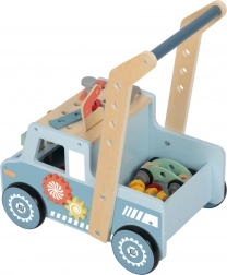 Ez az okos, kék teherautó formájú járássegítő ideális társ az első lépésekhez és egyben szórakoztató STEM műhely. A robusztus fa szerkezet stabilitást ad, míg a forgó fogaskerekek, hajtások és szerelőlapok a mechanika felfedezésére és a koordináció fejlesztésére hívnak.