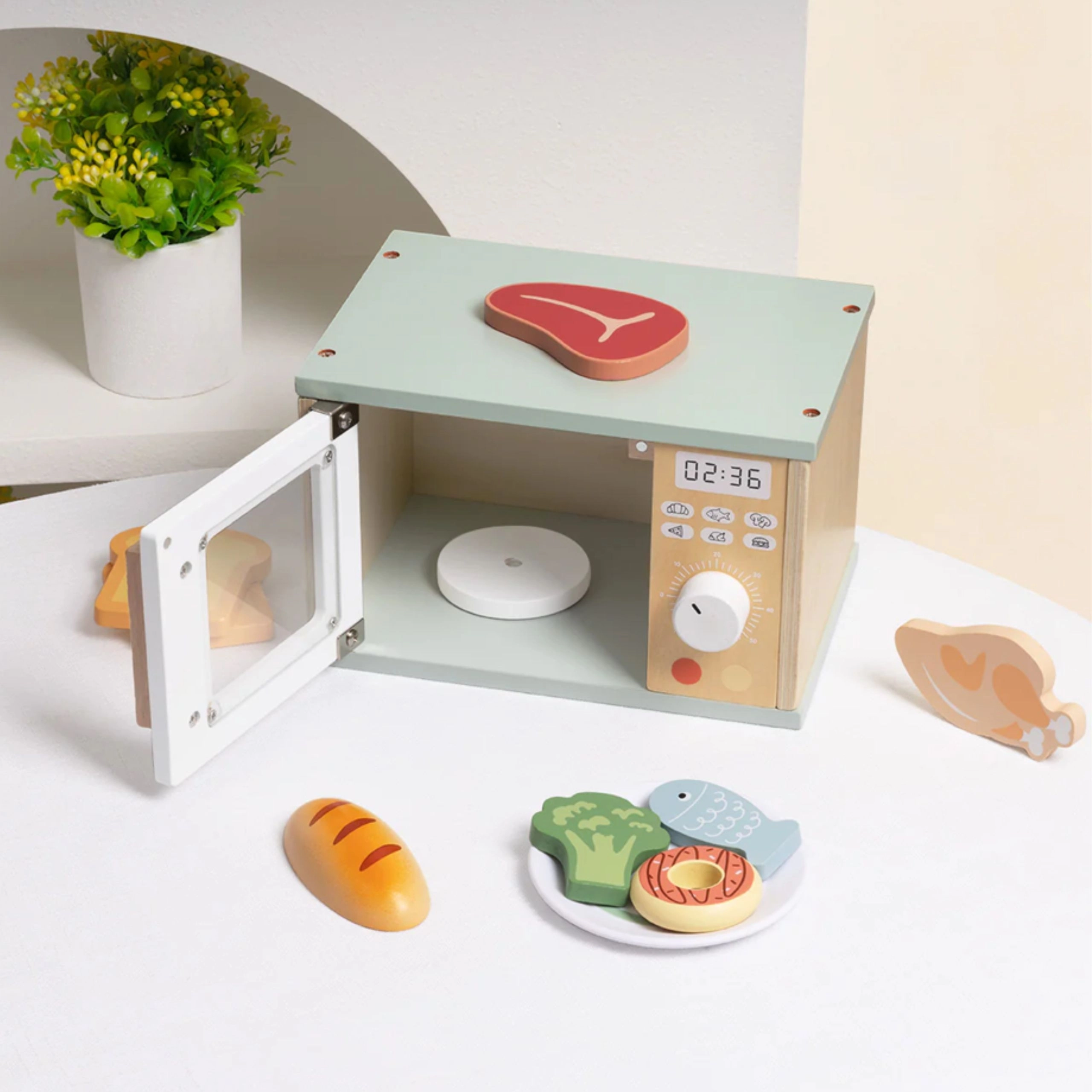Adj saját „konyhát” a gyerekeknek a TOOKY TOY fa mikrohullámú sütőjével. A valósághű részletek, mint a zsanéros ajtó, a forgótányér és a számlapos kijelző támogatják a kreativitást és a képzeletet, miközben a gombok és az ételek kezelése fejleszti a finommotorikát és a logikus gondolkodást. Ideális gyerekkonyhába, játszószobába és óvodába.