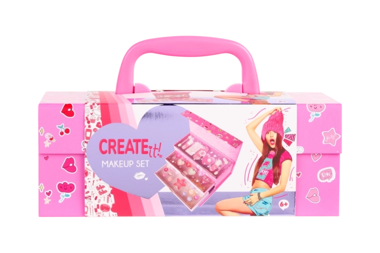 Fedezd fel a kreatív sminkelés varázsát a CREATE IT! háromszintes sminkes bőrönddel, kb. 6 éves kortól ajánlva. A kompakt bőrönd fogantyúval és biztonságos, mágneses záródással rendelkezik, belül pedig áttekinthetően tagolt rekeszekkel, melyek támogatják az önállóságot, a rendszert és a sminkelés örömét.