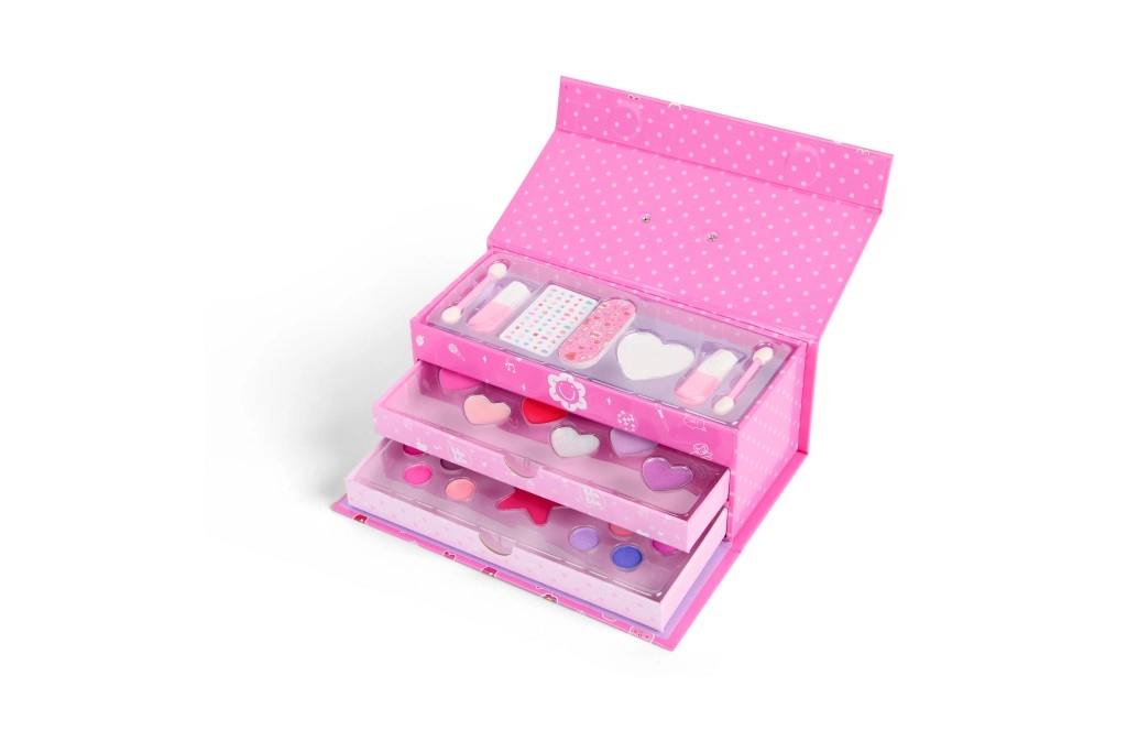 Minden szintnek megvan a szerepe: az elsőben körömlakkok, reszelő, applikátorok, matricák és pirosító található, a második szinten szájfények, a harmadik szinten pedig színes szemhéjpúderek és további pirosítók kapnak helyet. Remek választás kezdőknek, születésnapi ajándéknak és hétvégi kalandokhoz.