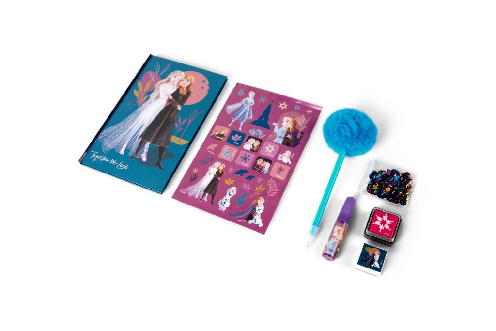 A szett ideális mindennapi feljegyzésekhez, titkos napló vezetéséhez vagy az oldalak díszítéséhez. A változatos kiegészítőknek köszönhetően a gyerekek fejlesztik finommotorikájukat, kreativitásukat és az íráshoz való viszonyukat. A FROZEN kedvelt hősnőivel készült tematikus grafikák garantálják, hogy az alkotás újra és újra élmény legyen.
