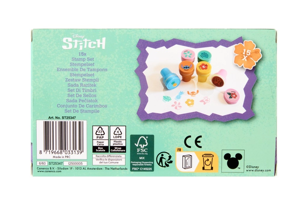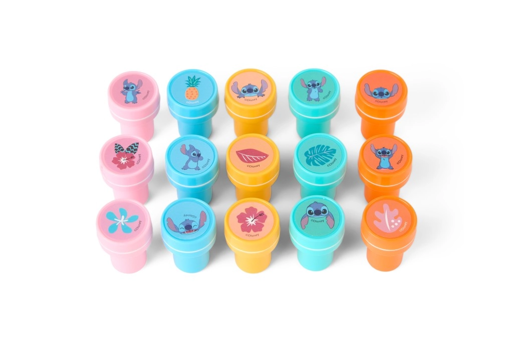 Kreatív bélyegzőkészlet a népszerű STITCH sorozat motívumaival, amely örömet szerez minden kis alkotónak. A csomagban 15 db bélyegző, színes festékpárna és kiegészítők találhatók képek, üdvözlőkártyák és iskolai füzetek egyszerű díszítéséhez.