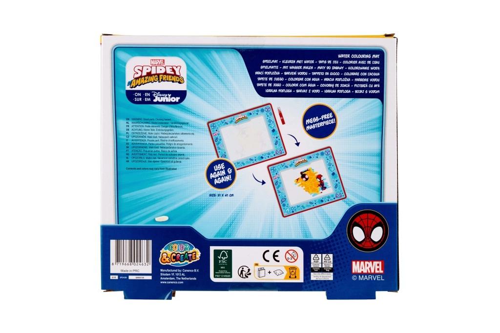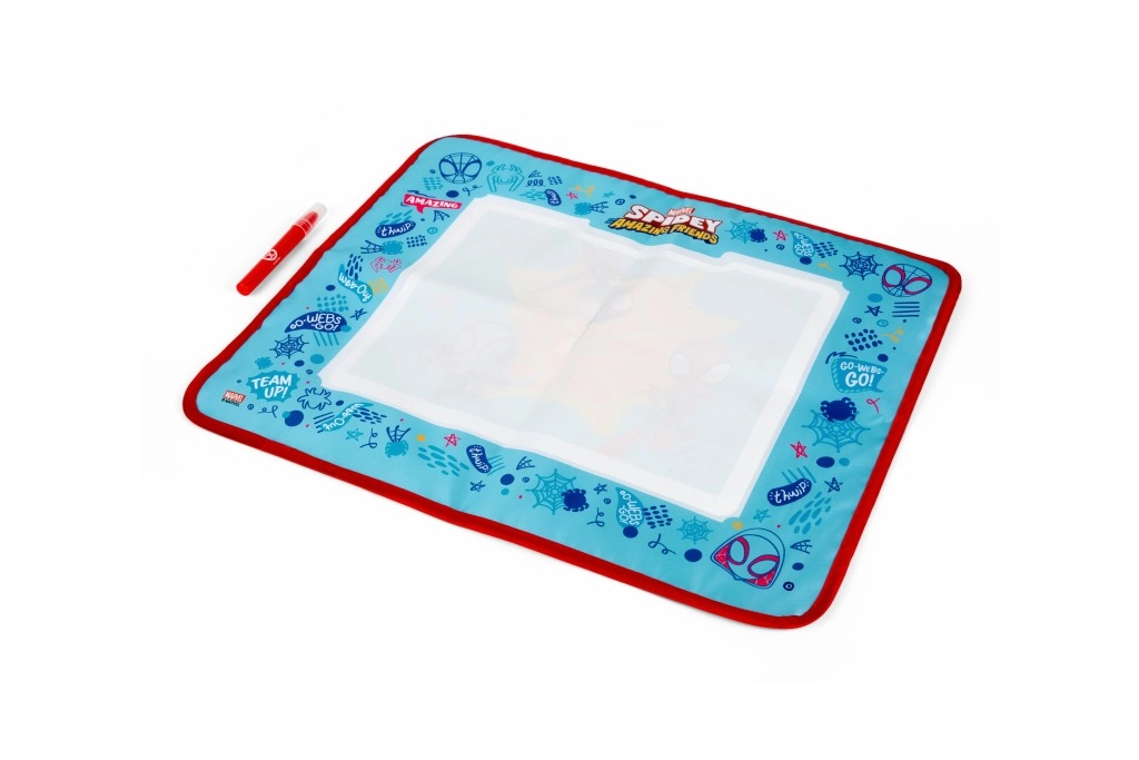 Ez a SPIDEY mintás kreatív szőnyeg remek módja annak, hogy a gyerekeket festék és foltok nélkül kösse le a rajzolás. A speciális vizes toll színes nyomot hagy a szőnyegen, amely száradás után eltűnik, így a móka újra és újra folytatódhat.