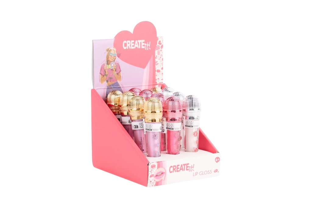 Szórakoztató, mikrofon alakú ajakfény a Create It!-től, amely ötvözi a fényt, a hidratálást és a játékos dizájnt. Az átlátszó tubus megmutatja a csillogó rózsaszín árnyalatot, míg a dekoratív, mikrofon formájú kupak remek ajándék a sminket és éneklést kedvelő kislányoknak.