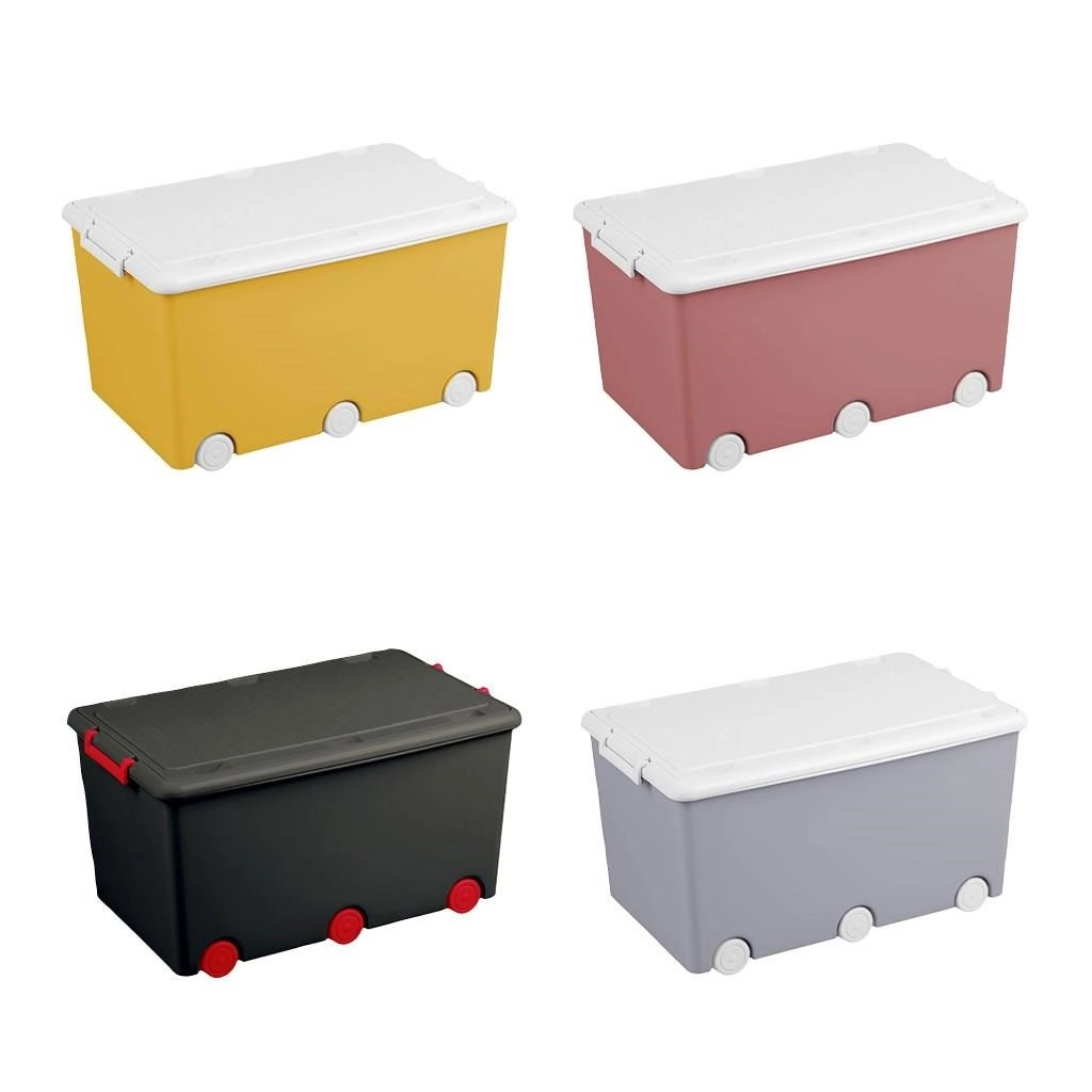 A praktikus és tartós TEGA tárolódoboz segít rendet tartani bármely gyerekszobában. A nagy, 60 literes űrtartalom elnyeli a játékokat, könyveket és apróságokat, míg a 6 könnyen guruló kerék megkönnyíti a mozgatást a helyiségben. A biztonságos oldalsó zárás két patenttal megóvja a tartalmat a kiszóródástól.