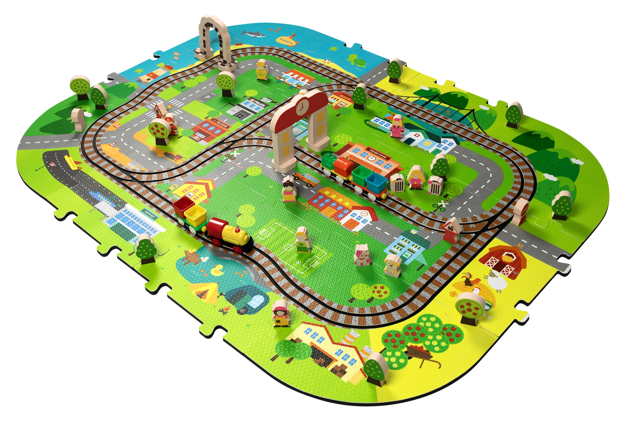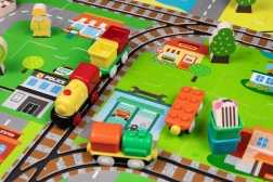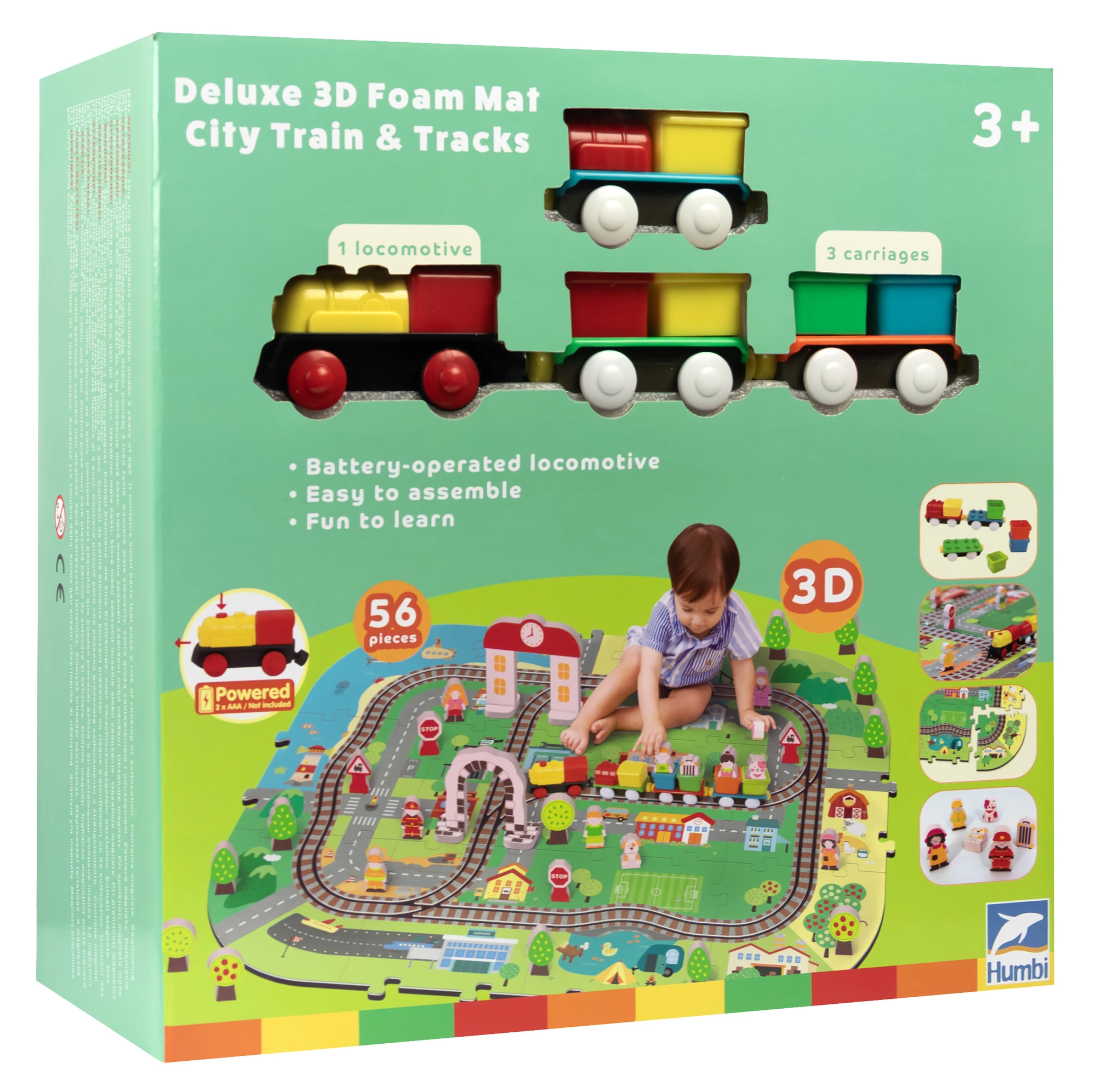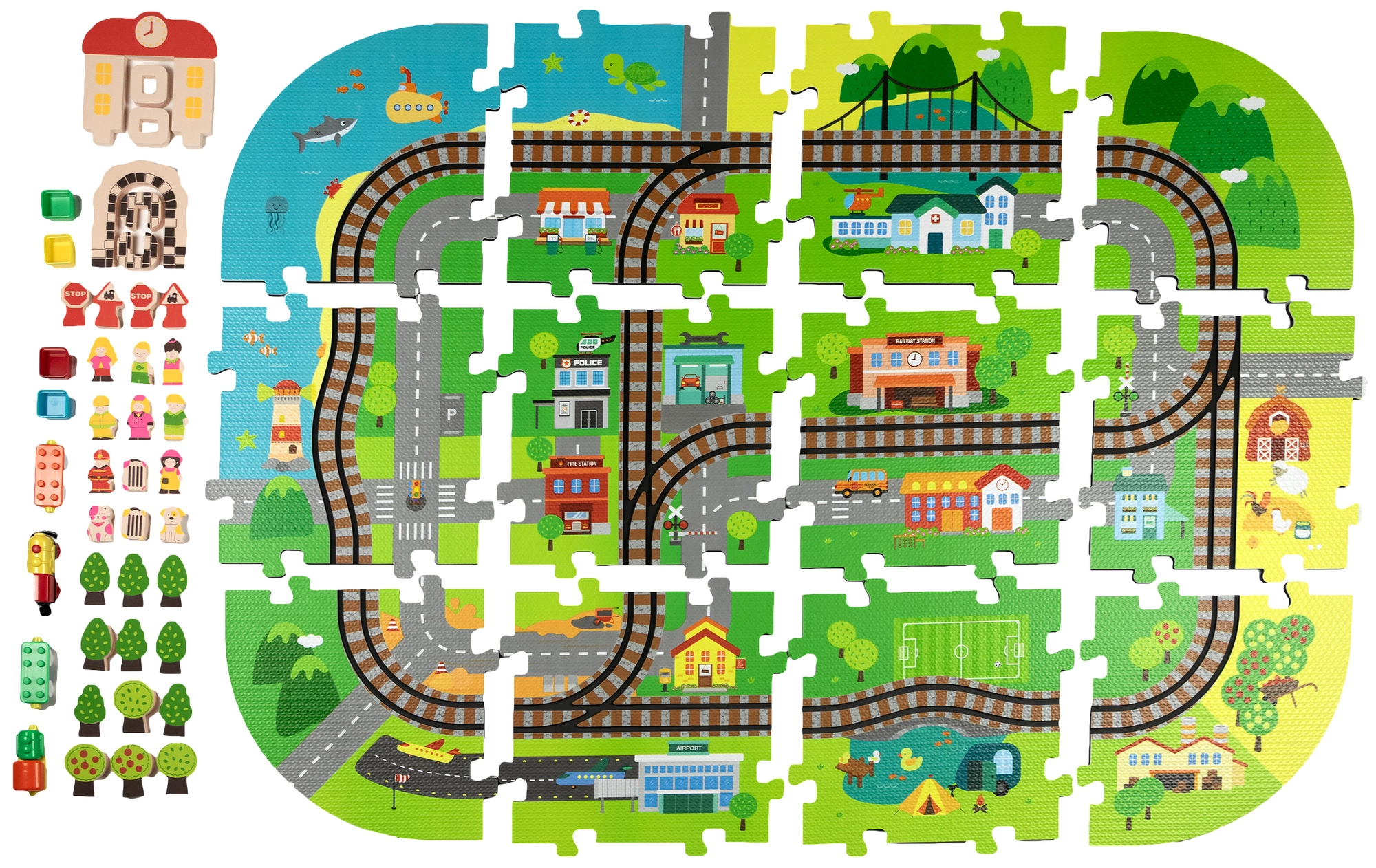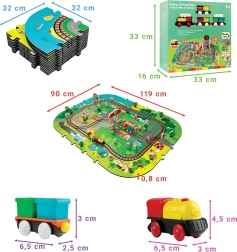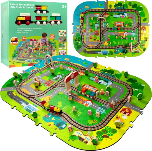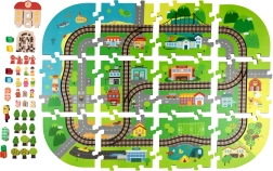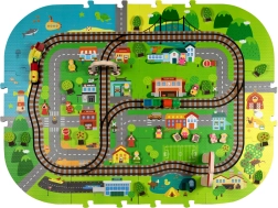 Illessze össze az elemeket, mint egy kirakót, és alkossa meg saját városát utcákkal, sínekkel, épületekkel és természeti elemekkel. A vastag EVA darabok tartják a formájukat és könnyen tisztíthatók.