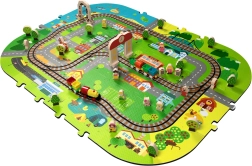 A készlet része 34 kiegészítő – figurák, táblák, fák és egyéb dekorációk a valósághű játékért. A vonat a vagonokkal könnyen összekapcsolható, a rakomány a dobozkákban szállítható, a jelenet pedig tetszés szerint alakítható. A szett ideális ajándék, megfelel az EN 71 és a RoHS 2011/65/EU szabványoknak, valamint rendelkezik CE jelöléssel.