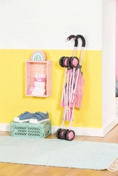 Az ülés mögött praktikus bevásárlóháló található apróságoknak, cumisüvegnek vagy kedvenc játékoknak. Játék után a babakocsit egyszerűen kompakt méretre össze lehet hajtani, így alig foglal helyet. 36–43 cm méretű babákhoz ideális, és kreatív, hosszan tartó játékra ösztönöz.