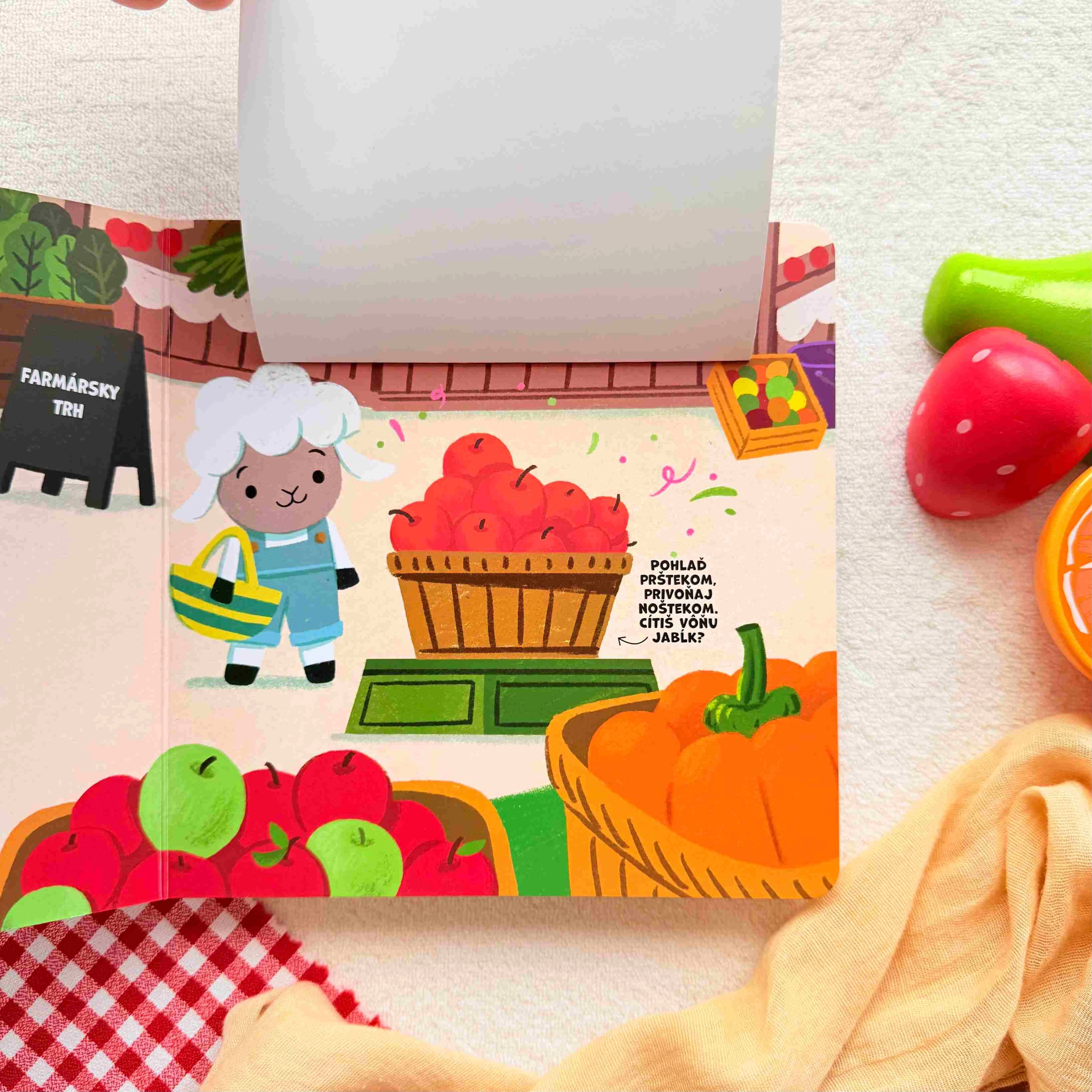 Fedezd fel a varázslatos, illatos könyvet, amelyben Belka, a bárányka elindul bevásárolni a termelői piacra. Minden dupla oldalon egy valósághű gyümölcs- vagy zöldségillat rejtőzik – elég finoman megérinteni az oldalt és megszagolni. Az olvasás interaktív szórakozássá válik, amely felkelti a kíváncsiságot, fejleszti a fantáziát és pozitív viszonyt alakít ki a könyvekhez.