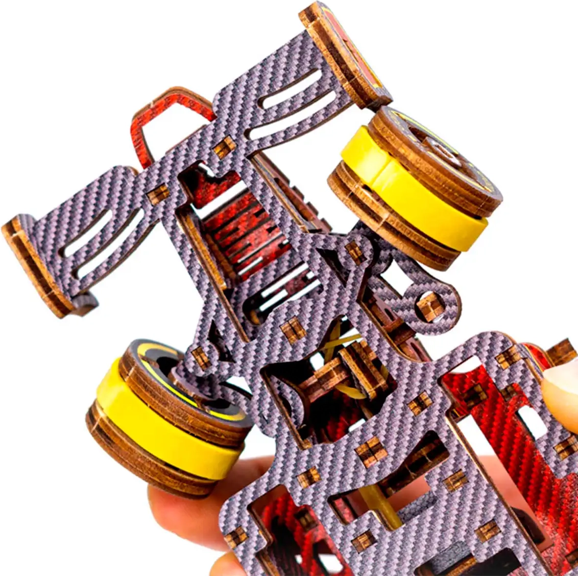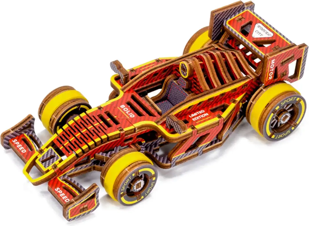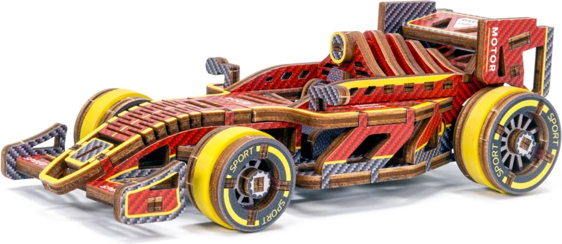 Fedezze fel a mechanikus fa modellek világát a limitált WOODEN CITY versenyboliddal. A minőségi nyír rétegelt lemezből precíz lézervágással készült elemek tökéletesen a helyükre illenek, az eredmény pedig egy sima járású, működő modell. A gumimeghajtás felhúzás után akár 1 métert is megtesz, míg a kormányozható első tengely valósághű irányítást ad a menetnek.