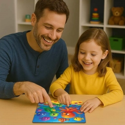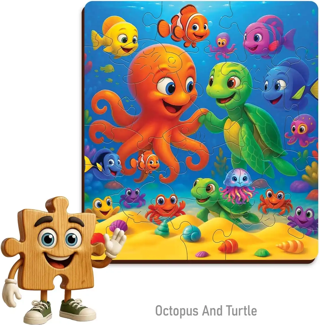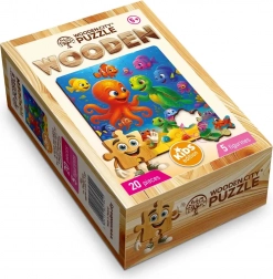 A WOODEN CITY fa puzzle polip és teknős motívummal a gyerekeket a lenyűgöző víz alatti világba repíti. Minden darab maximális pontossággal készült, hogy tökéletesen illeszkedjen, az eredmény pedig egy elbűvölő jelenet, kb. 19,3 × 17,4 cm méretben.
