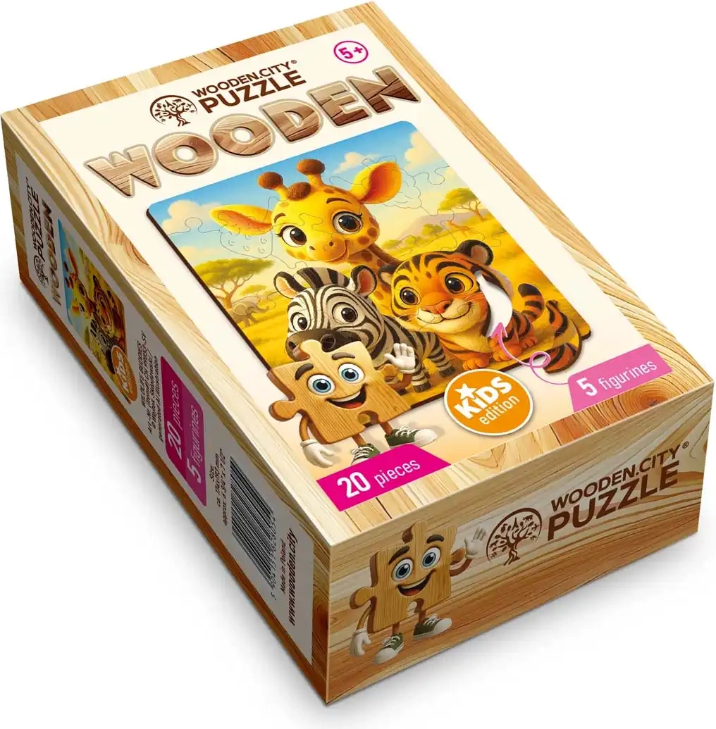 Fedezze fel a WOODEN CITY fa kirakók varázsát – ideális választás gyerekeknek. 20 gondosan kivágott darab, köztük 5 egyedien formázott, amelyek fejlesztik a koncentrációt, türelmet és kreativitást. A szálkamentes, sima éleknek és a mellékelt mintaképnek köszönhetően a kirakás szórakoztató és biztonságos.