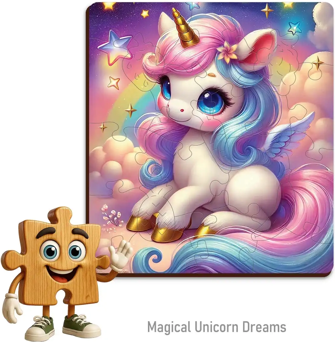 Ez a szett remek ajándék azoknak a gyerekeknek, akik szeretik az egyszarvúakat és szeretnének minőségi fa kirakóval gyakorolni.