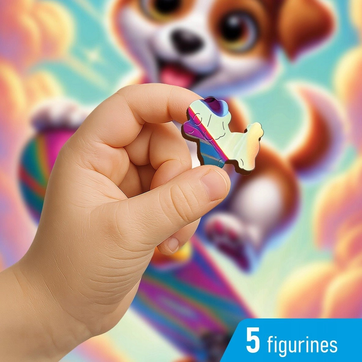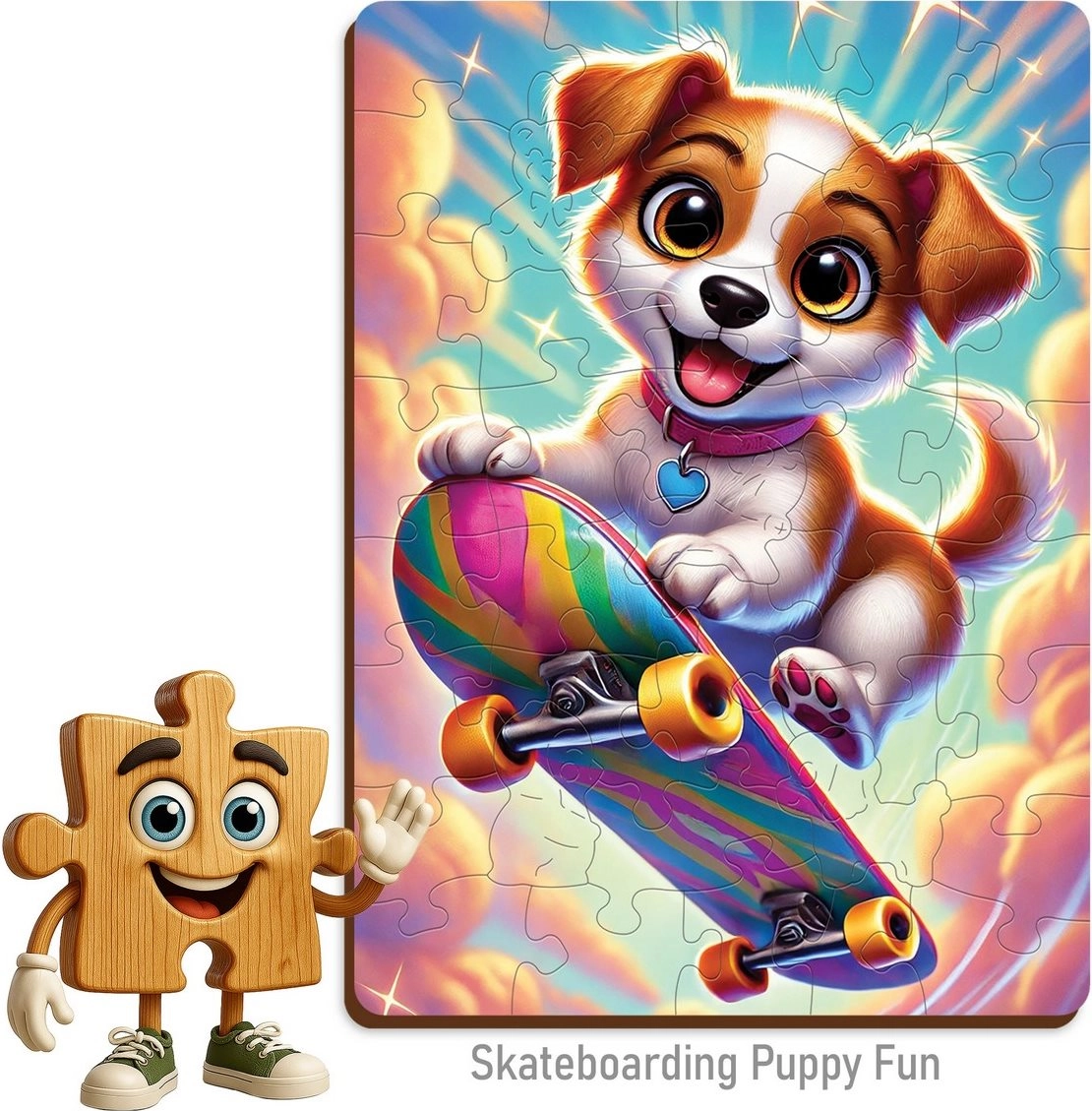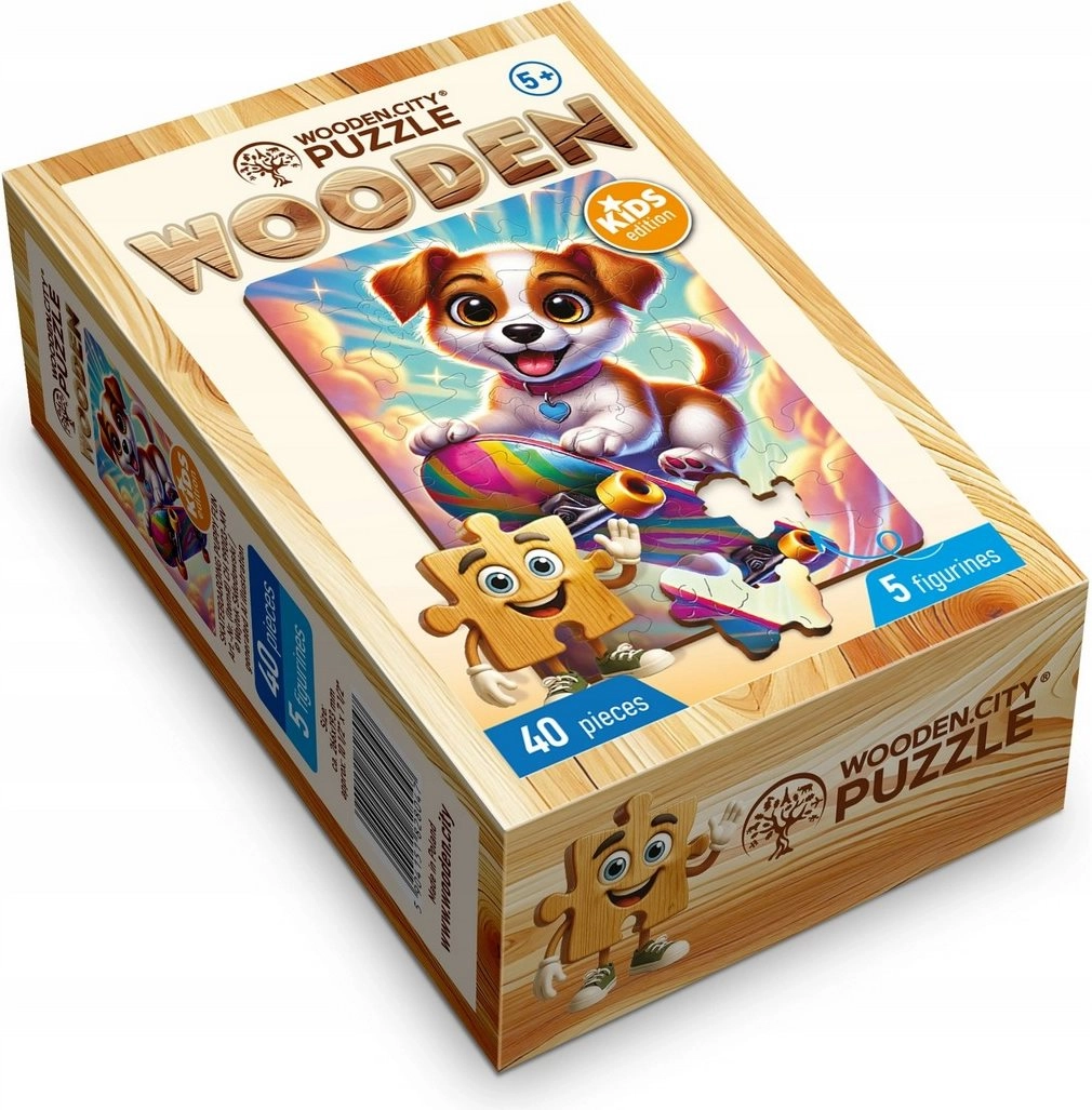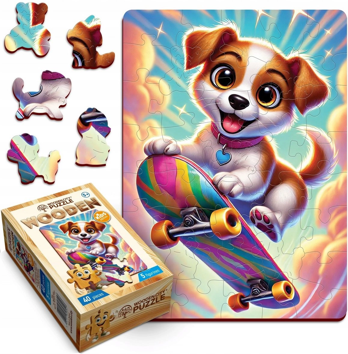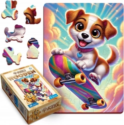 A gördeszkázó kutyus motívumú fa kirakó remek választás a kreatív játékot kedvelő gyerekeknek. A minőségi anyag és a gondos kivitelezés kellemes kirakást és hosszú élettartamot biztosít. A csomag tartalmaz egy külön mintalapot is, amely megkönnyíti a kezdést.