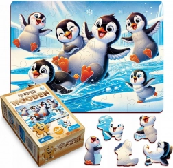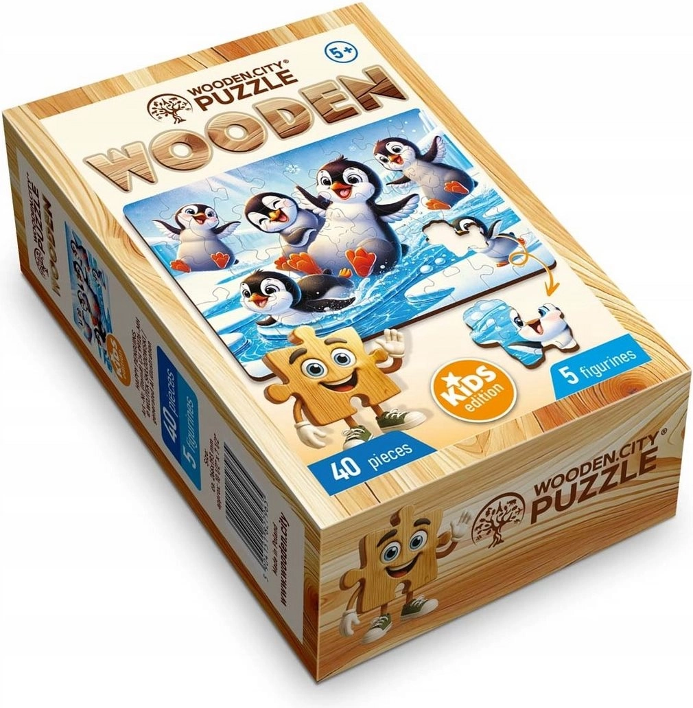 A WOODEN CITY Vidám pingvinek fa puzzle remek választás gyerekeknek és szülőknek, akik minőségi, tartós és szórakoztató játékot keresnek. Gondos kivitelezésének és varázslatos motívumának köszönhetően a gyerekek megszeretik a kirakózást, miközben fejlődik finommotorikájuk és logikus gondolkodásuk.