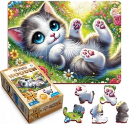 Ajándékozza meg a gyerekeket minőségi fa puzzle-lel, bájos kiscica képpel. A masszív daraboknak és a precíz kivitelezésnek köszönhetően a kirakás kellemes, biztonságos és motiváló élmény. A kész kép kb. 26,6 × 19,3 cm méretű, tökéletes ismételt kirakásra vagy a gyerekszoba dekorációjaként.