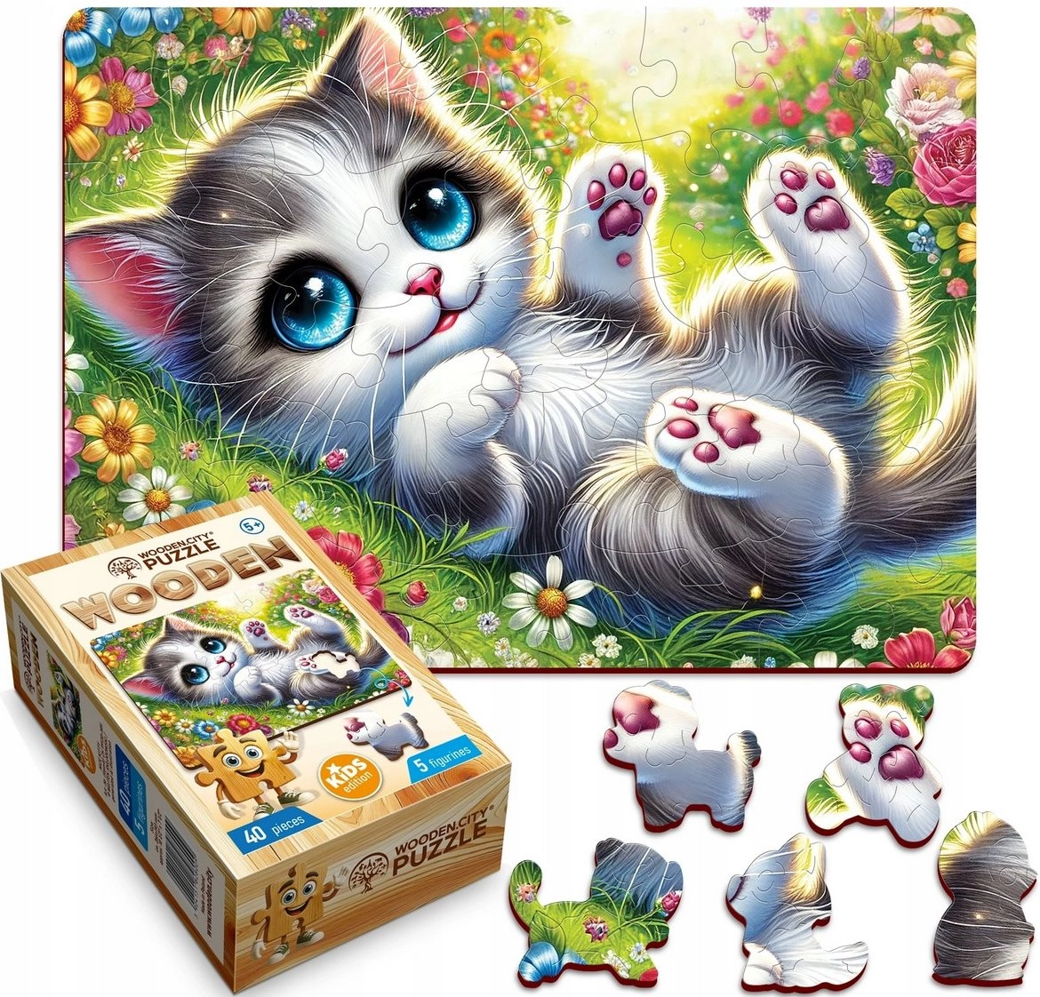 Fedezze fel a szórakoztató és tartós, kiscicás mintájú fa puzzle-t, amely a gyerekeket és a szülőket egyaránt elbűvöli. Tartalmaz 40 masszív fa kirakódarabot, 5 egyedien formált figurális elemet, valamint szálkamentes, sima éleket a precíz lézervágásnak köszönhetően. A puzzle fejleszti a koncentrációt, a türelmet és a kreativitást, a csomagban pedig külön álló minta is található a könnyebb kirakáshoz.