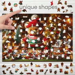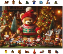 Fedezd fel a kirakás örömét ezzel a fa puzzle-lel, amely varázslatos karácsonyi motívumot ábrázol: sapkás és pulóveres mackót. A minőségi fa elemek sima, lézervágott éleikkel tökéletesen illeszkednek és hosszú élettartamot garantálnak. A kész kép kb. 54 × 39,4 cm méretű, gyönyörű szezonális dekoráció.