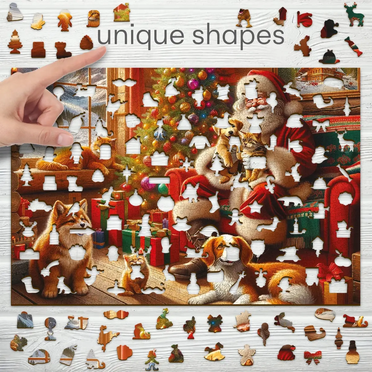 A Wooden City Mikulás és barátai fa puzzle az ünnepi hangulatot egyenesen az otthonába hozza. A precíz lézeres megmunkálás simán és pontosan illeszkedő darabokat biztosít, míg a tematikus motívumok formájú különleges elemek minden kirakórajongót megörvendeztetnek. A csomagban külön nyomtatott minta is található a kényelmesebb kirakáshoz.