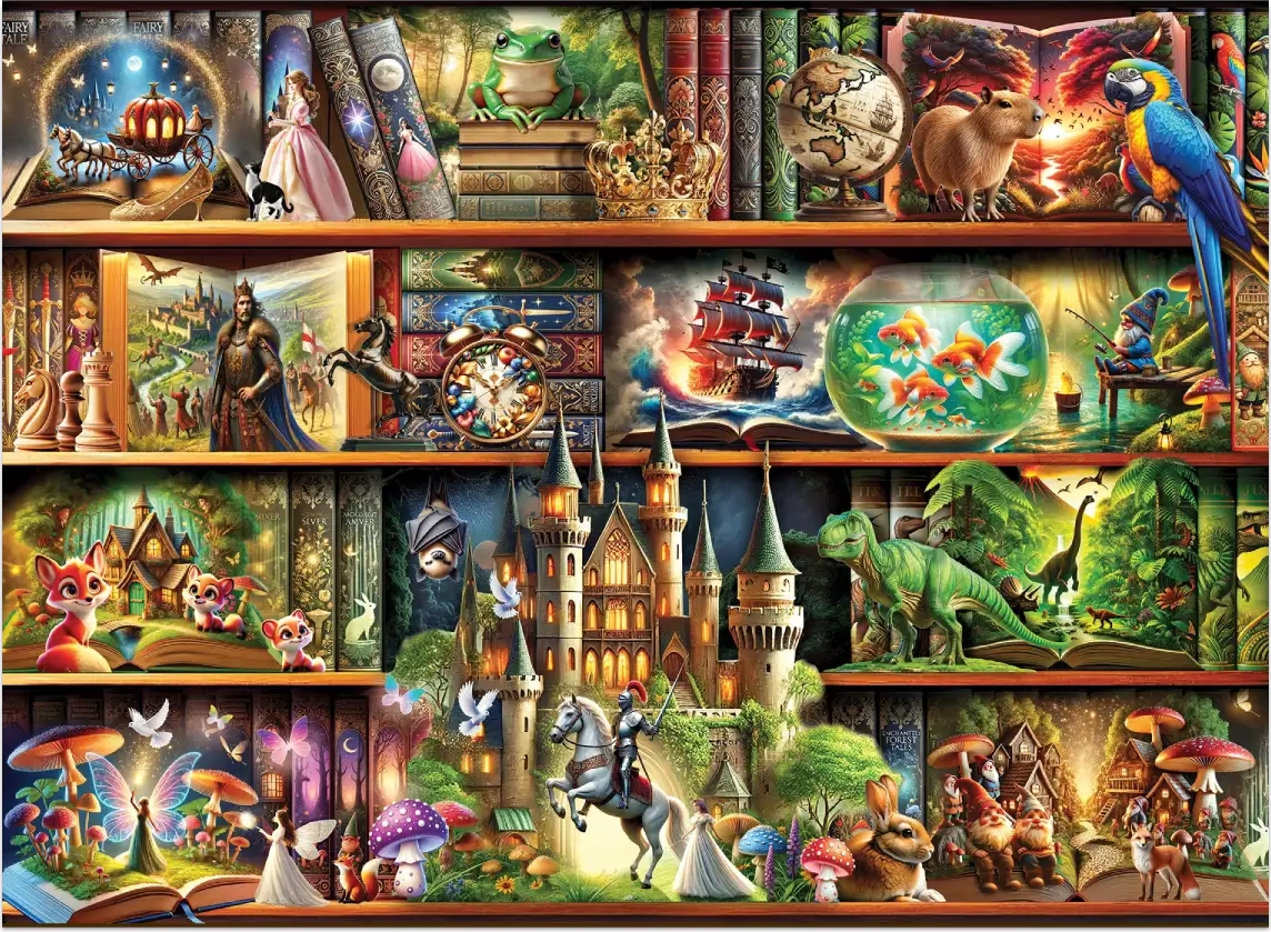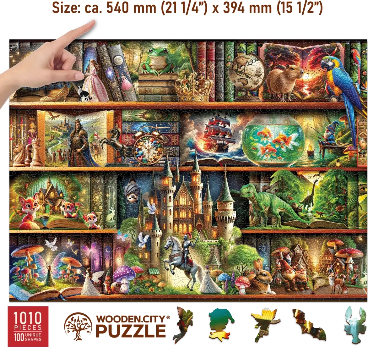 Engedje szabadjára a kreativitását az „Minden polcon egy történet” című, egyedi fa kirakóval. A lézerpontosan megmunkált darabok tökéletesen illeszkednek, és az elkészült kép stabilan tartja a formáját. A könnyebb tájékozódást segítő minta sem hiányzik, a részletekben gazdag motívum pedig darabról darabra új felfedezéseket tartogat.
