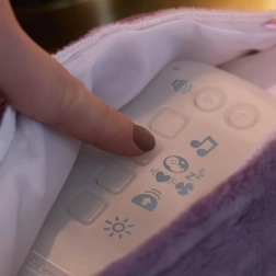 A finoman derengő pocak és a dallamok, természet hangjai valamint a fehér zaj választéka segít a babának megnyugodni és könnyebben elaludni.
