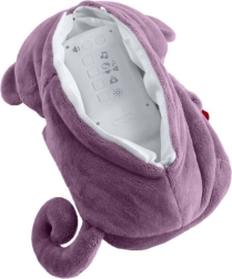 Ez a bájos lila plüss majmocska a babák megnyugtatására és könnyebb elaltatására készült. Finom fényhatásokat, kellemes dallamokat, természet hangjait és fehér zajt kombinál ritmikus „lélegzéssel”, amely segíti a kicsiket az ellazulásban és a biztonságérzet megteremtésében.
