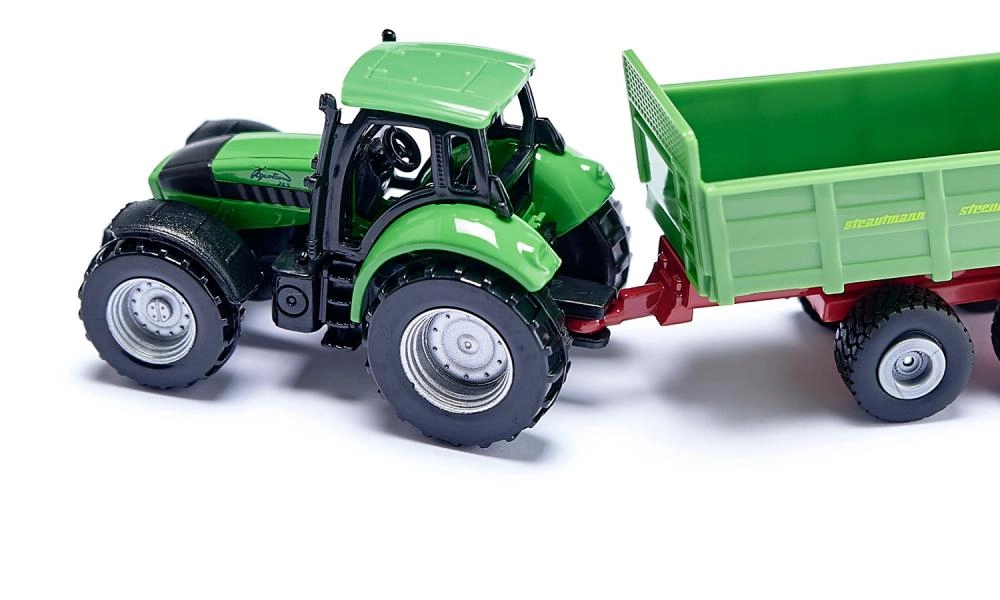 A DEUTZ traktor STRAUTMANN szórókocsival kompakt méretarányban részletgazdag kidolgozást, működő vonókapcsolatot és simán gördülő kerekeket kínál a könnyű haladáshoz.