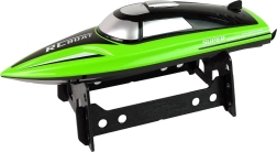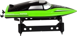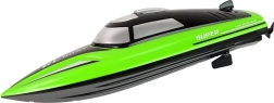 Gyors RC motorcsónak 2,4 GHz-es frekvencián elegáns zöld–fekete színben, amely dünamikus vízi szórakozást nyújt. A karcsú, aerodinamikus testnek, a folyamatos előre/hátra és oldalirányú vezérlésnek, valamint a mellékelt USB-s töltésű akkumulátornak köszönhetően pillanatok alatt indulásra kész. A kompakt méretek kisebb vízfelületeken is használhatók, a stabil állvány pedig biztonságos tárolást biztosít a parton.