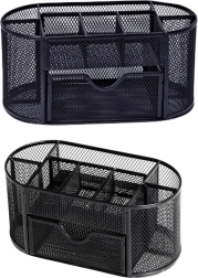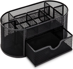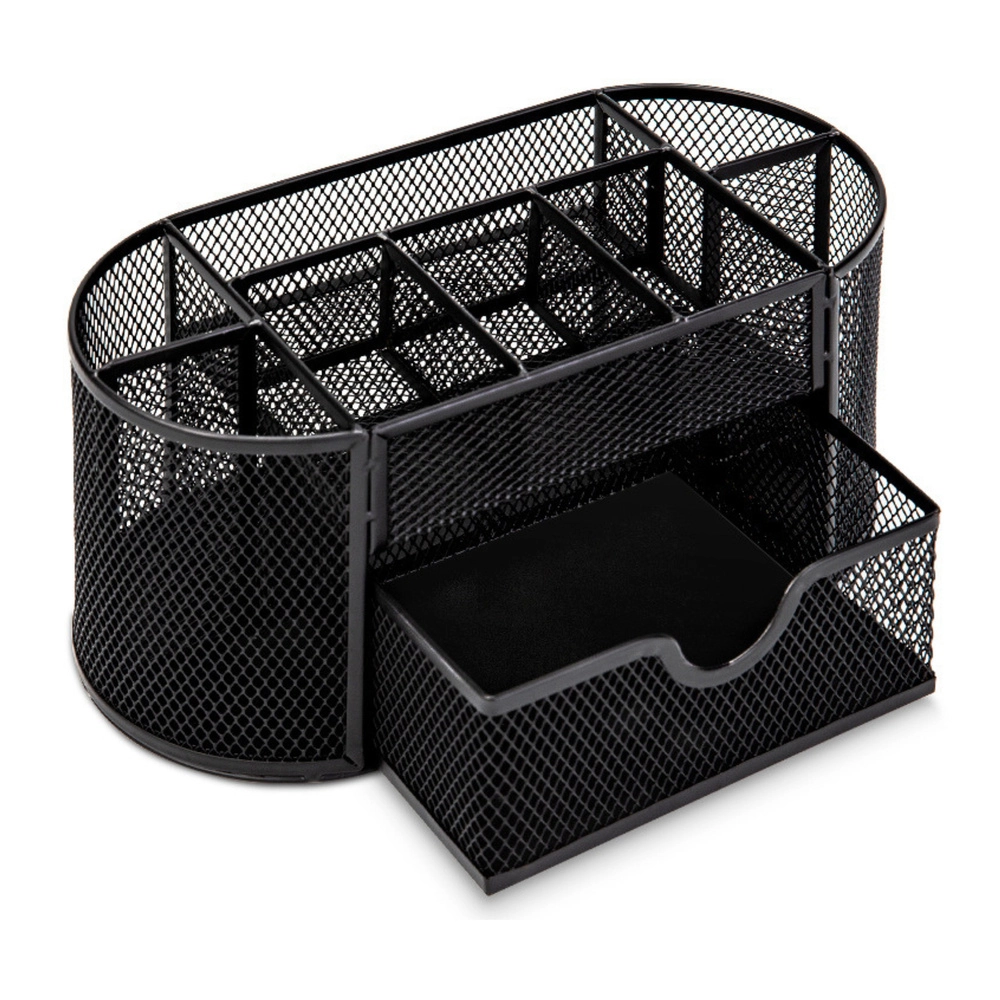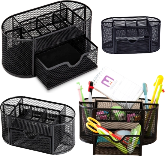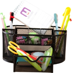 Tartson rendet az íróasztalon ezzel a kompakt rendezővel, melynek mérete 21 × 10,5 × 11 cm. A könnyű, lakkozott fém és a finom hálós kialakítás jó rálátást biztosít a tartalomra, elősegíti a levegő keringését, és bármilyen irodai stílussal remekül harmonizál. Ideális irodába, dolgozószobába és diákszobába.