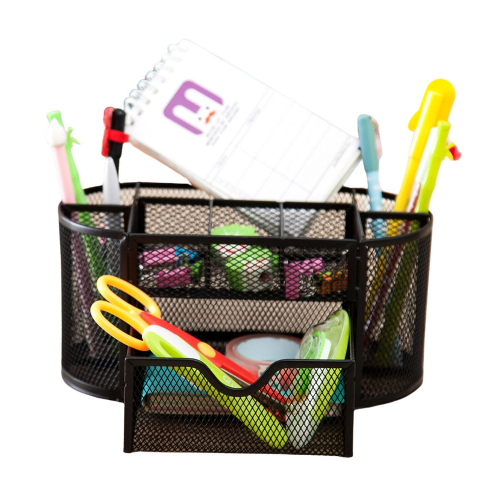 A praktikus tagolás 6 rekeszt kínál, köztük egy kis kihúzható fiókot az apróságoknak. A rendező stabil, tartós, és készen áll a mindennapos igénybevételre. Kompakt méreteinek köszönhetően helytakarékos, mégis elegendő helyet biztosít a írószereknek, jegyzetfüzeteknek, gemkapcsoknak és egyéb nélkülözhetetlen eszközöknek.