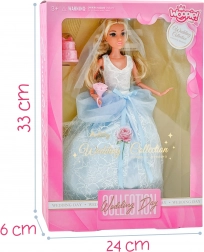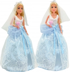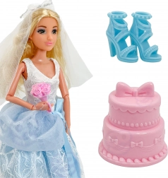 Fedezd fel a fantázia világát a Lily menyasszony babával, aki készen áll élete nagy napjára. Részletgazdag menyasszonyi ruhája kék díszítésekkel, finom fátyla és szőke haja első pillantásra magával ragad. A szett része a mini esküvői torta és a szív alakú csokor – minden a tökéletes esküvői jelenetekhez.