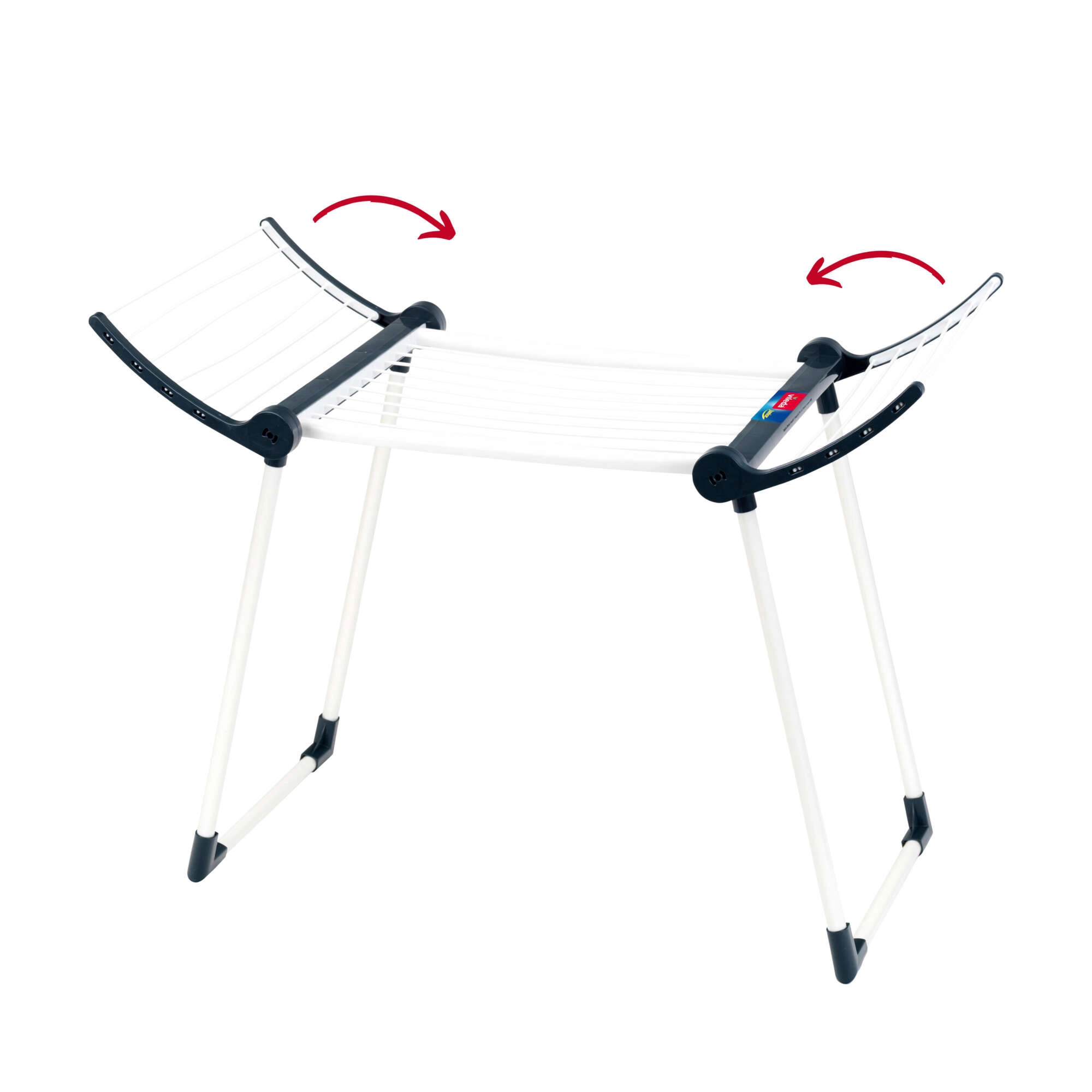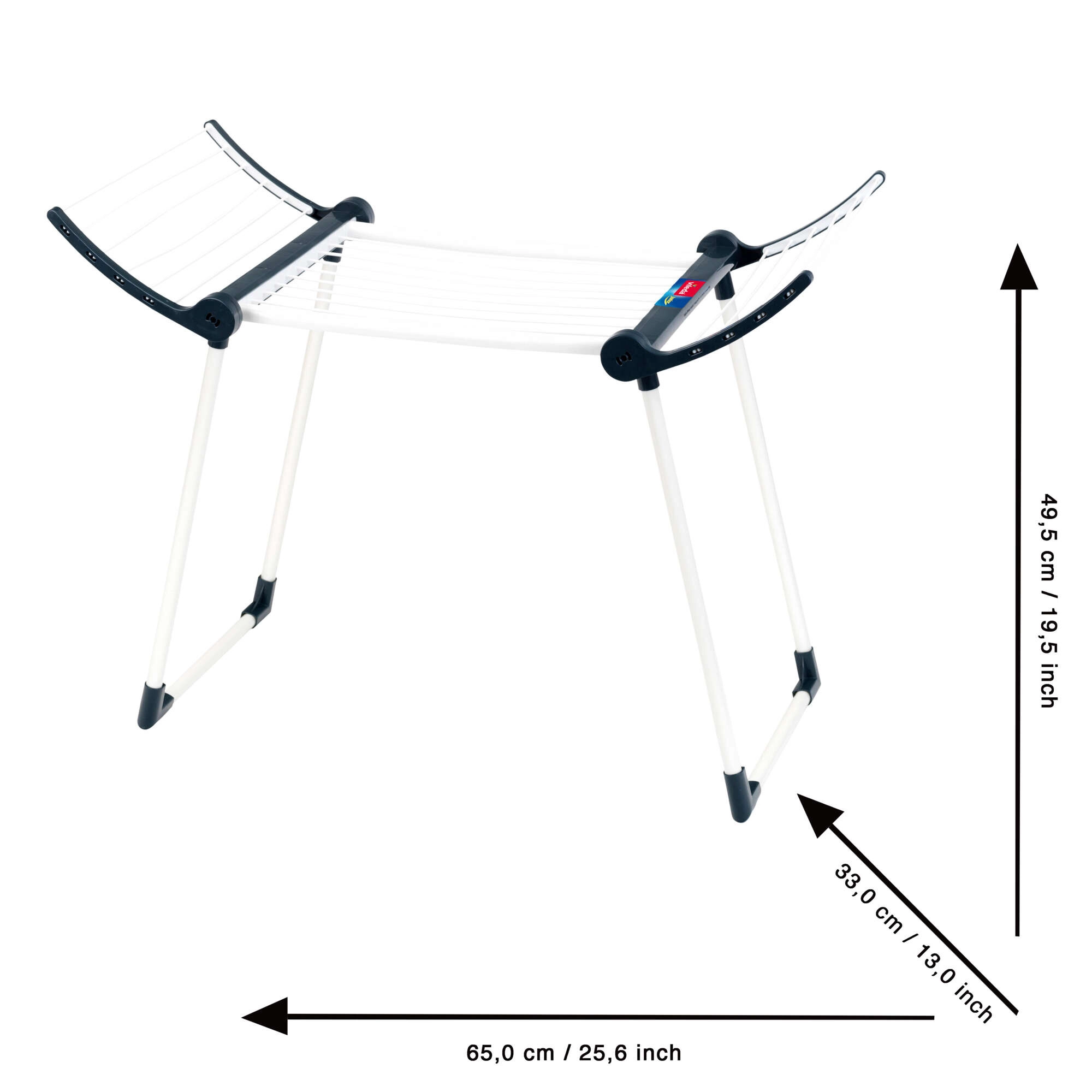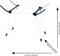 A szerkezet masszív és stabil a dupla lábaknak köszönhetően, a szárító fehér színű fekete elemekkel, és két lehajtható oldallal rendelkezik a nagyobb szárítófelületért. Játék után könnyen összehajtható kompakt méretre, így helytakarékos a gyerekszobában.