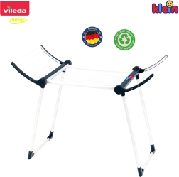 A VILEDA licenc alapján készült Vileda gyerek ruhaszárító valósághű, mégis biztonságos háztartási élményt nyújt a kis segítőknek. Ideális babaöltözékek és könnyű gyerekruhák szárítására, és támogatja a önállóság fejlődését, valamint a felnőttek utánzását.