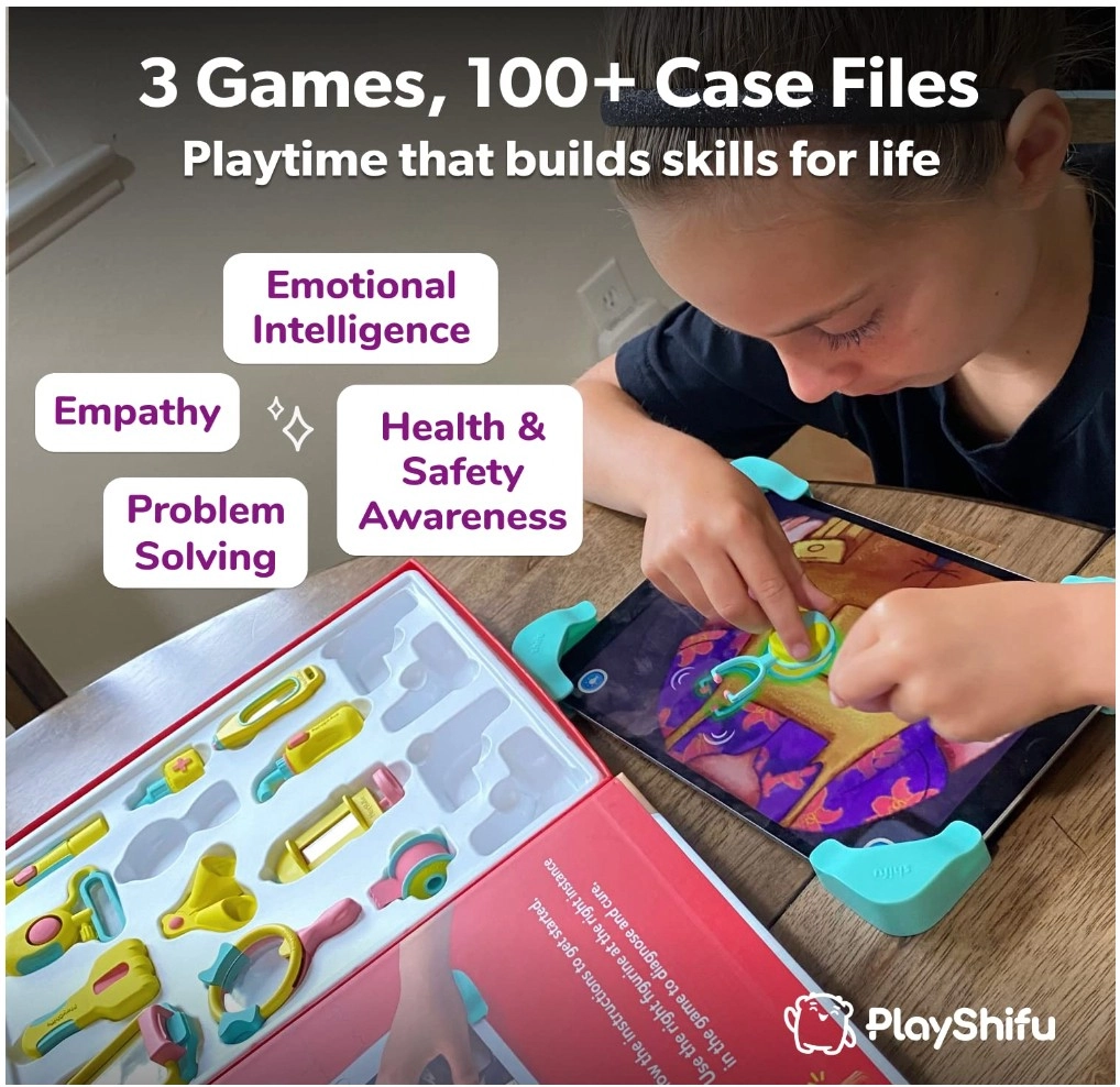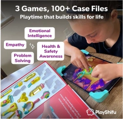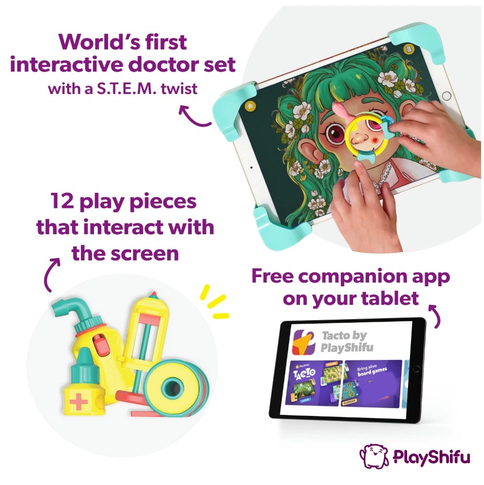 Változtasd a tabletet gyerek-rendelővé a DOKTOR interaktív játékkal! Ez az okos készlet 4–8 éves gyerekeknek ötvözi a valódi orvosi eszközöket az alkalmazással, és fejleszti a finommotorikát, a kreativitást és a logikus gondolkodást. A készlet tartalmaz 12 valósághű eszközt, egy praktikus koffert és tablet-rögzítő sarkakat – a tablet nem része a csomagnak.