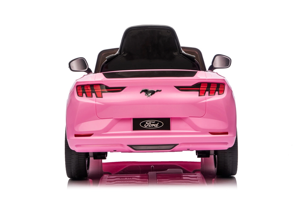 A rózsaszín elektromos Ford Mustang Mach‑E kisautó modern megjelenésével és átgondolt részleteivel hódít – a LED fényszóróktól a sportos kerekeken át a valósághű cockpitig, kürttel ellátott kormánnyal. A masszív felépítés és a minőségi műanyagok stabilitást és kényelmet nyújtanak vezetés közben.