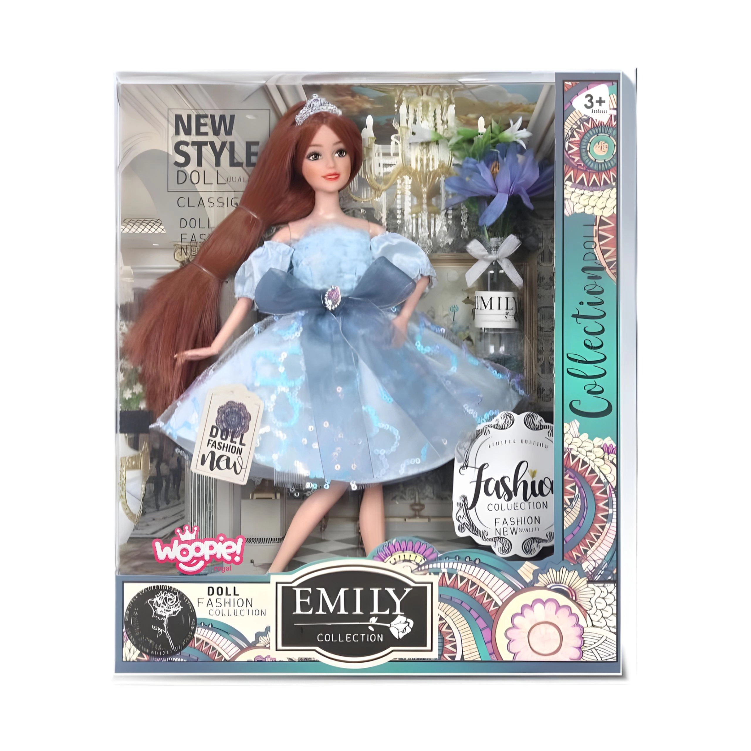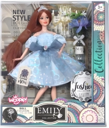 Fedezd fel a divat varázsát a Woopie Royal márka Emi babájával. Az égszínkék, csillogó ruha finom tülllel, masnival és királyi koronával kiemeli elegáns megjelenését. A mozgatható karok és lábak változatos pózokat és kreatív stylingot tesznek lehetővé, így minden játék varázslatos kalanddá válik.