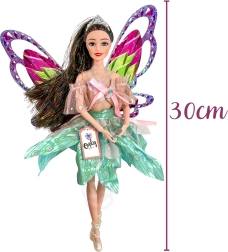A mozgatható karoknak és lábaknak köszönhetően a baba könnyen beállítható különböző pózokba – a tündértánctól a pózolásig. A csomag része egy hajkefe is a hosszú, fényes szálakkal díszített tincsek fésüléséhez, így a gyerekek élvezhetik a formázást és a gondoskodást.