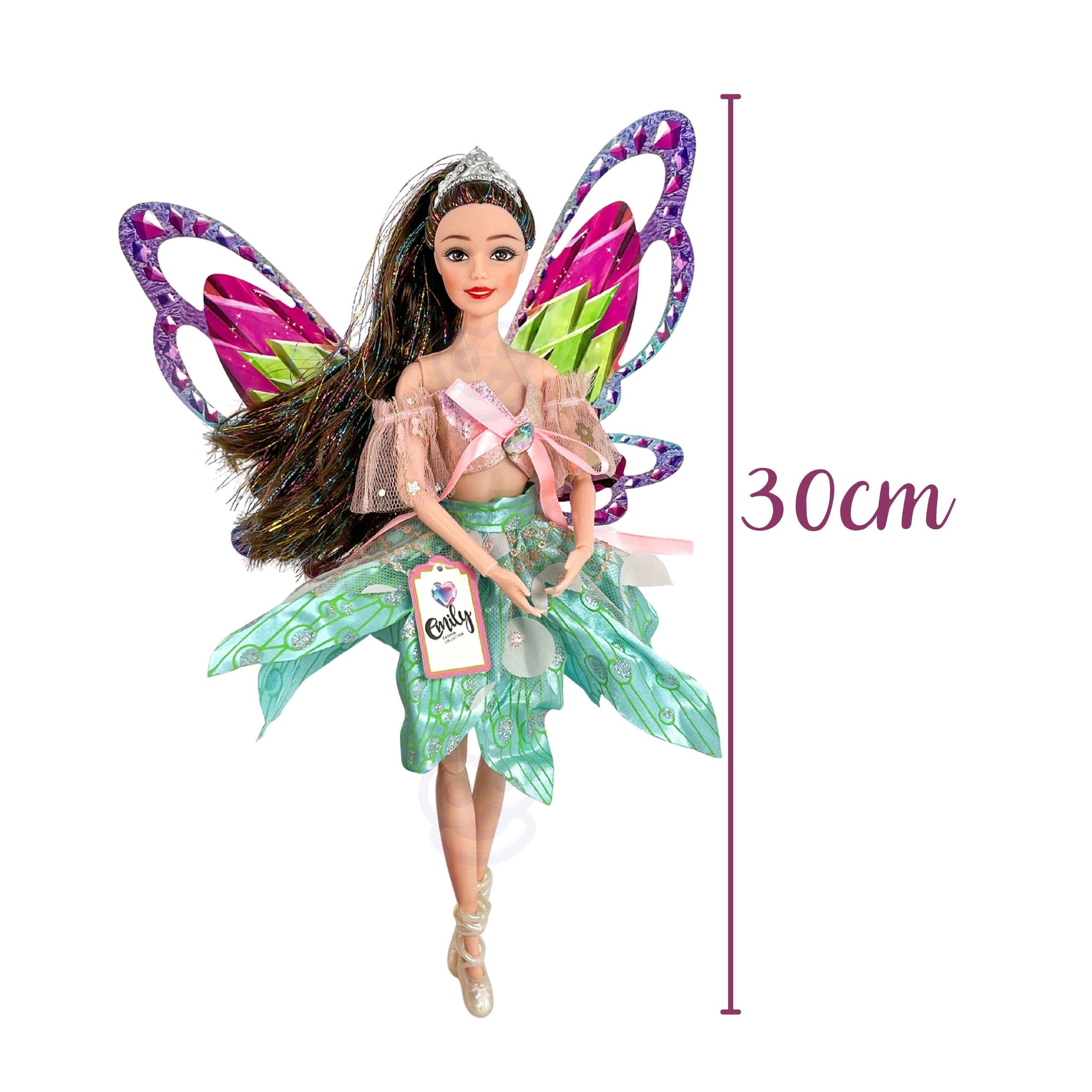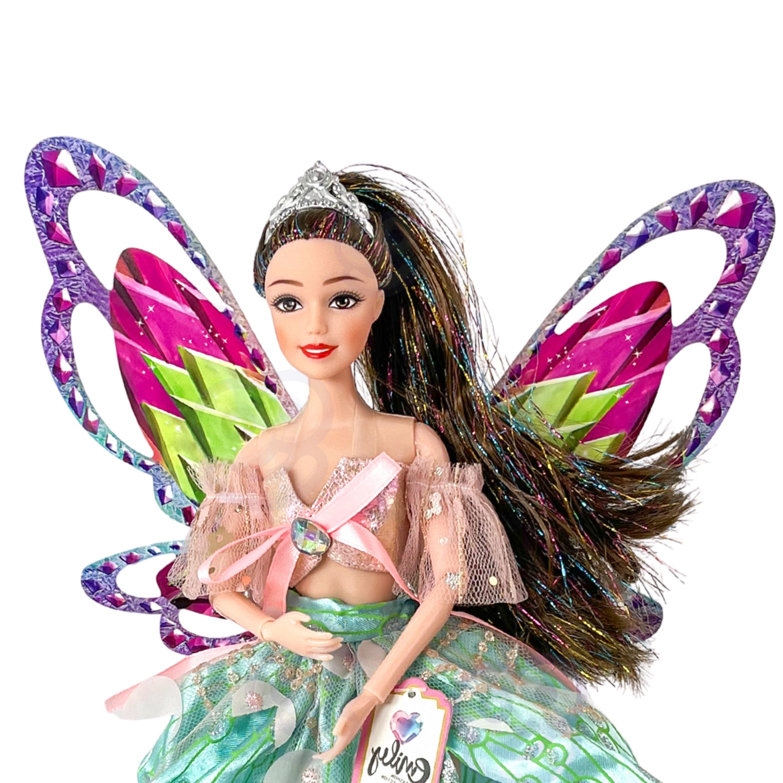 Emily baba tökéletes a kis álmodozóknak, akik szeretik a meséket, a divatot és a varázslatos kalandokat. Nagy, színes szárnyai és csillogó részletei igazi tündérhatást keltenek, míg az elegáns, tüll ujjas ruha ünnepélyes és fotogén megjelenést biztosít.
