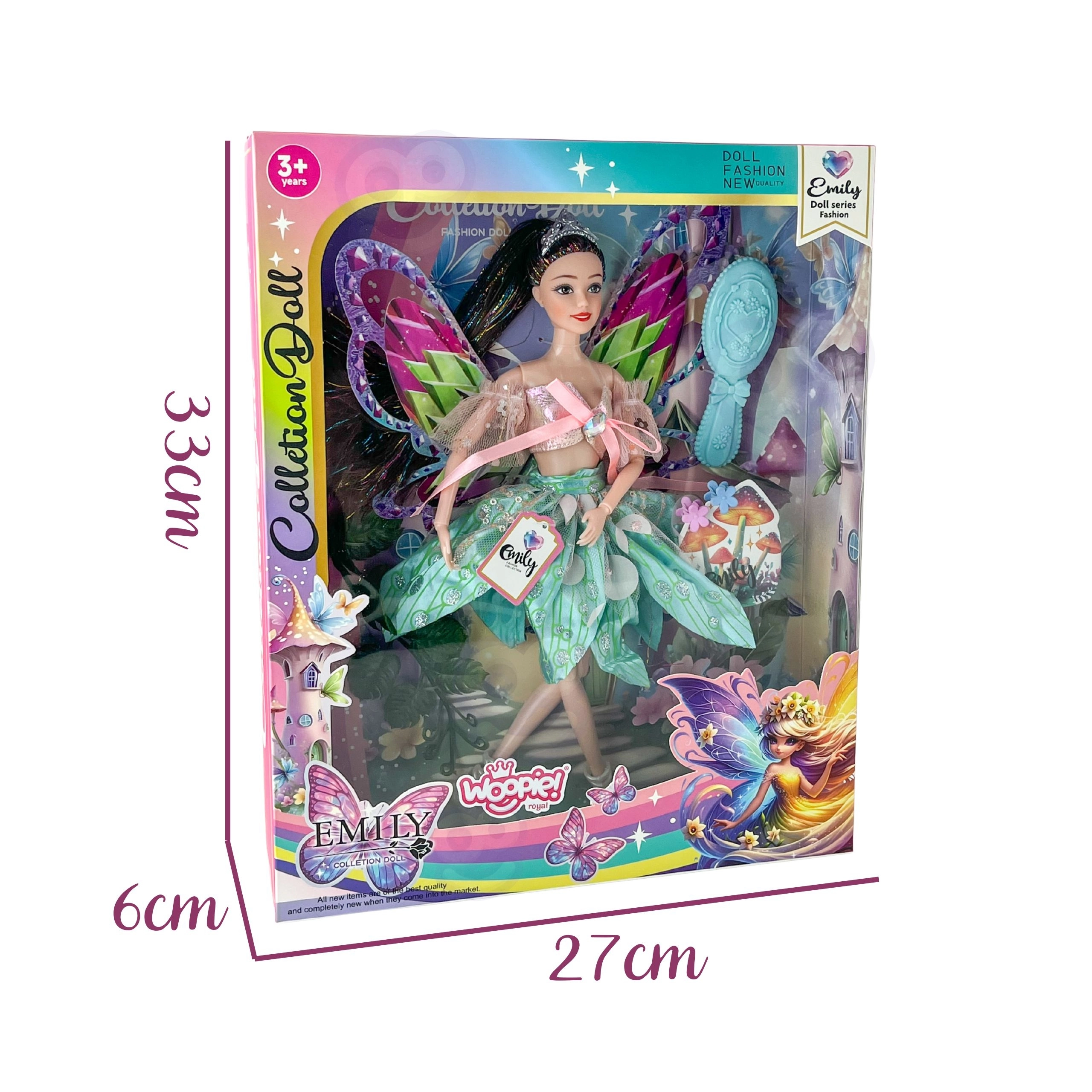 Fedezd fel a varázslatos világot a WOOPIE ROYAL márka Emily babájával. Ez a bájos tündér színes, csillogó szárnyakkal, stílusos tüllruhában és mozgatható végtagokkal minden gyermeket elbűvöl. A minőségi kidolgozásnak és a kiegészítőknek, mint például a hajkefe, köszönhetően órákon át tartó kreatív szórakozást és szerepjátékot kínál.